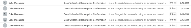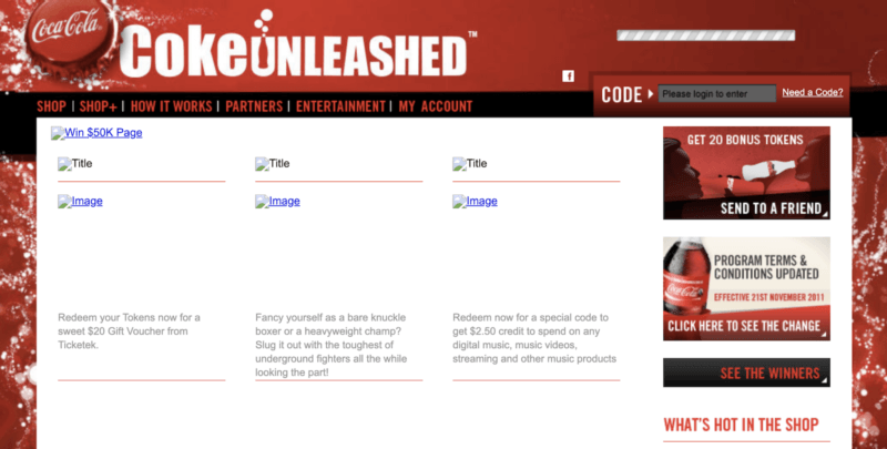Coke Unleashed had been around since at least 2010. The name would later change to Coke Rewards before Coca-Cola pulled the pin in July 2016 . Through the site, you could redeem tokens for things like movie tickets and gift cards as well as Coke-branded merch.